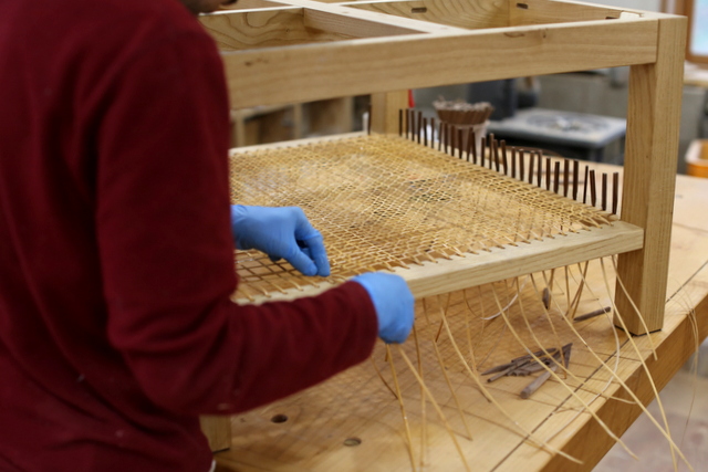 棚板を籐(ラタン)で編んであります。