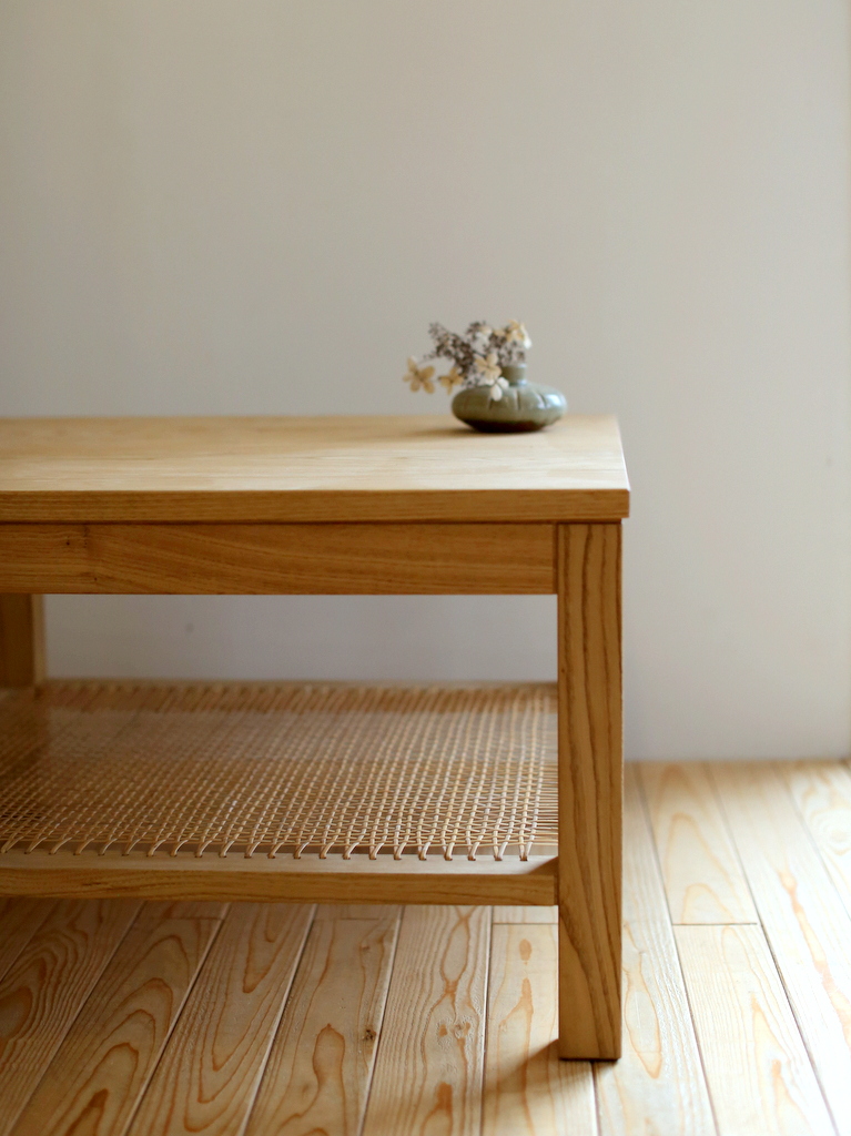 「籐編み棚のローテーブル」