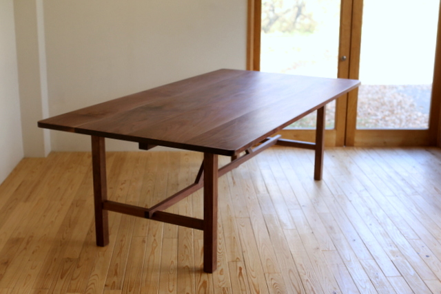 ブラックウォルナットの木でお作りした、トラステーブルです。