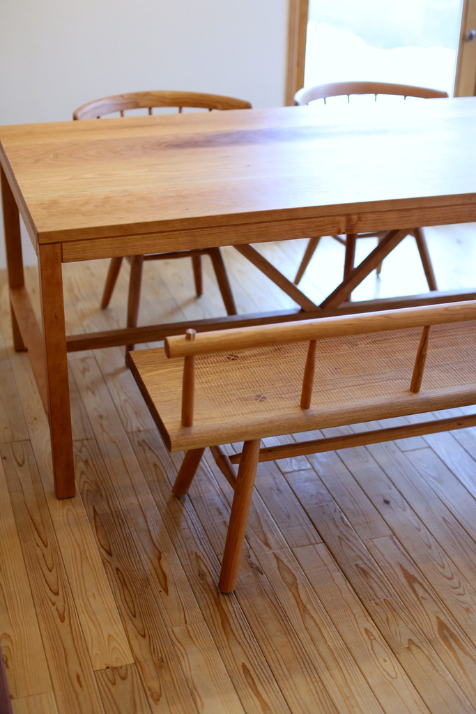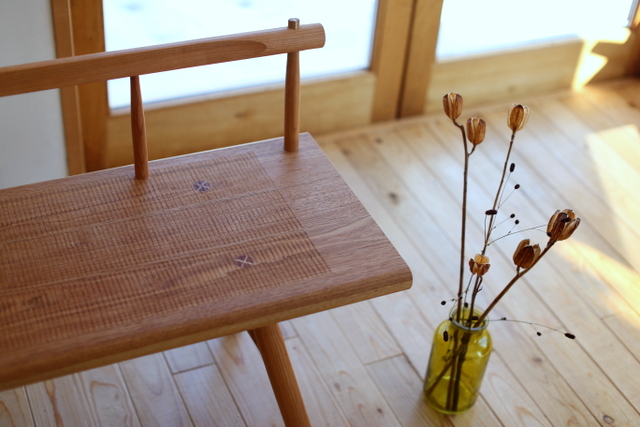 座面がオニクルミの木で、脚と背はチェリーの木です。